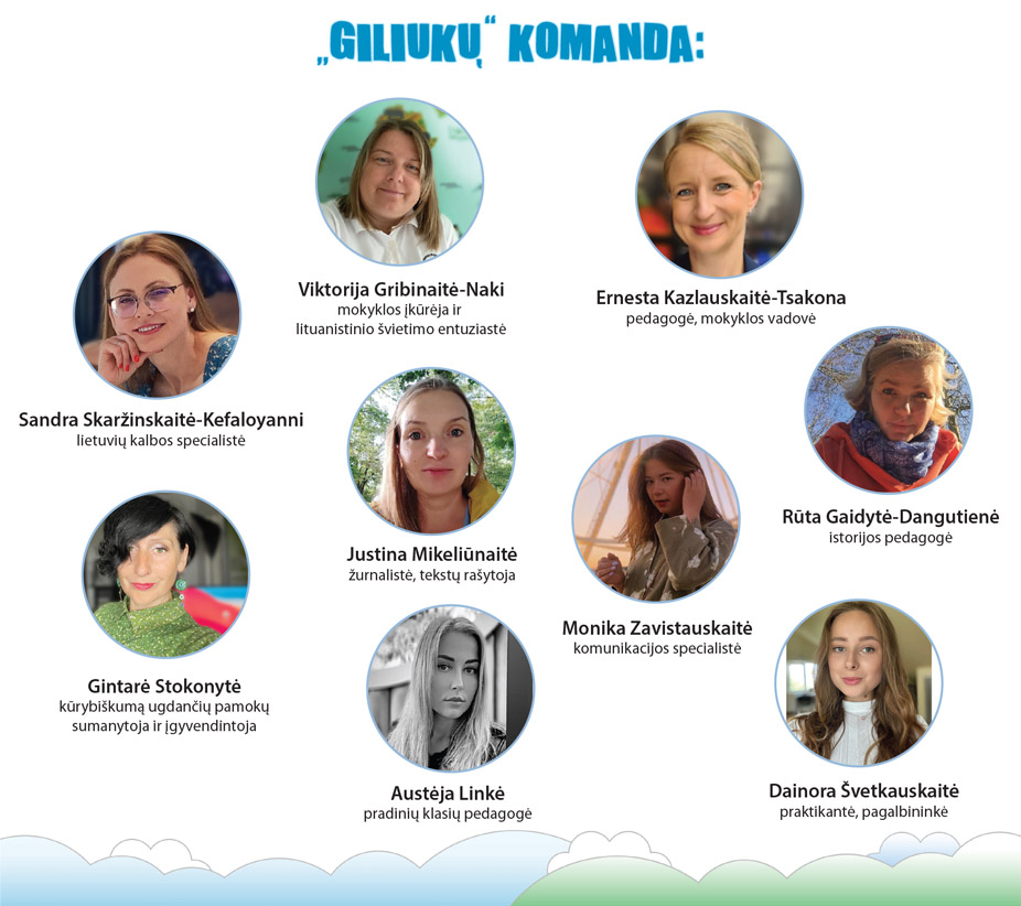 Kūrybinė lituanistinė mokykla „GILIUKAI“ – įtrauki, interaktyvi, draugiška, kūrybiškumą ugdanti lituanistinė mokykla, kuri gali būti Tavo draugu, žiniomis praturtintoje lietuviškoje kelionėje. Per savo gyvavimo metus (nuo 2018 m.) keitėmės, tobulėjome ir augome: iš Atėnuose veikiančios mokyklos tapome Kūrybine lituanistine mokykla, peržengiančia ne tik valstybių, bet ir žemynų sienas ir vienijančia vaikus iš viso pasaulio!