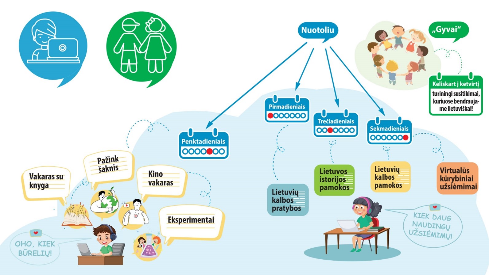 Mes - kūrybinė lituanistinė mokykla „GILIUKAI“ - viena iš užsienyje veikiančių lituanistinio ugdymo mokyklų, kviečiančių vaikus mokytis „mišriuoju“ būdu: jungiantis nuotoliu, o šalyse, kuriose yra daugiau mokyklą lankančių vaikų, dalyvauti ir kontaktiniuose užsiėmimuose.